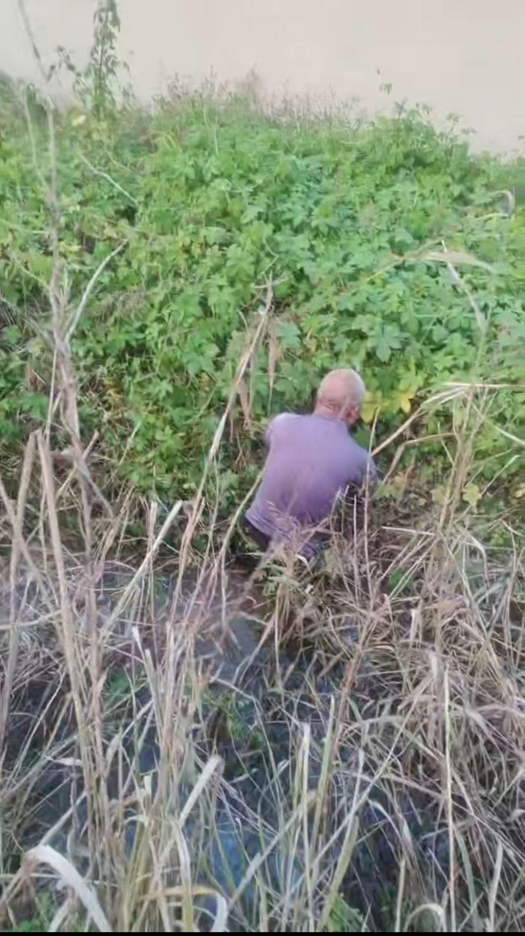 听到有人喊“救命”,王廷刚、李广涛担心有诈,一路走一路手机视频录像。根据王廷刚、李广涛提供给大皖新闻记者的现场视频显示,郭大爷落入的水沟较深,且被杂草严密遮盖。