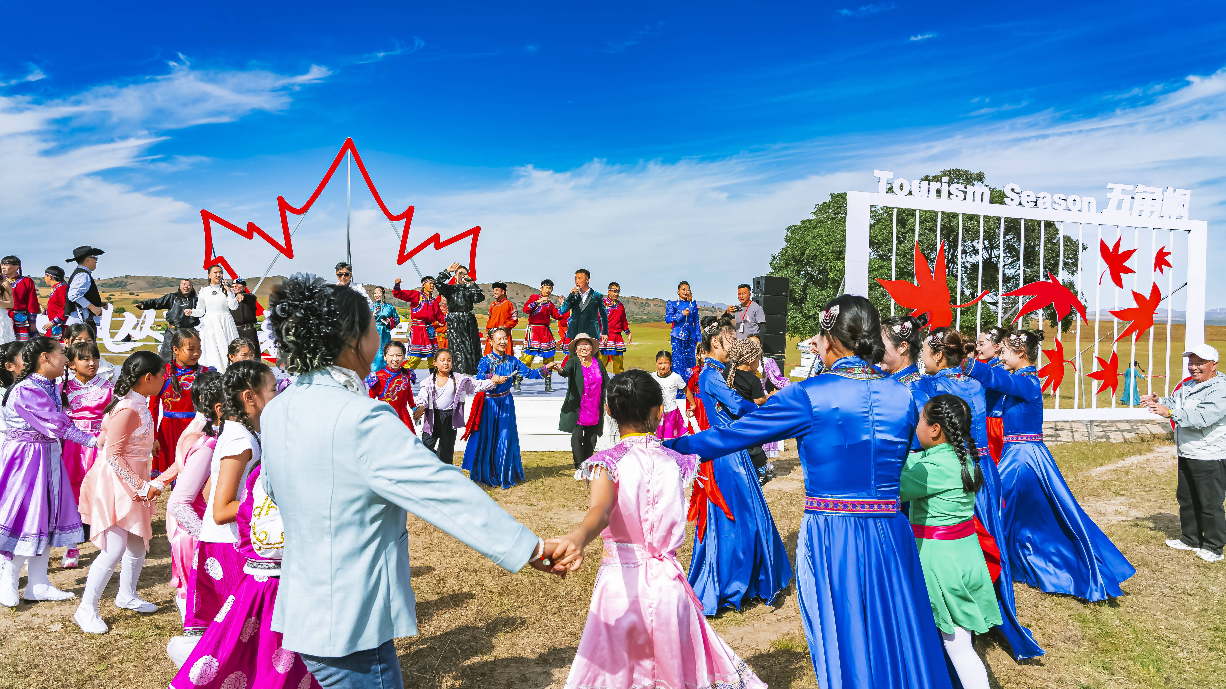 “如今景区实现了智慧管理,线上预约、电子票务一键完成,入园效率比以往提升60%。”五角枫生态旅游景区管理员吴永安说,配套升级大幅提升了景区接待能力。自今年9月起,代钦塔拉苏木推出“五角枫文化旅游季”,涵盖摄影大赛、歌舞展演、非遗市集等项目,国庆期间就吸引游客22.93万人次。